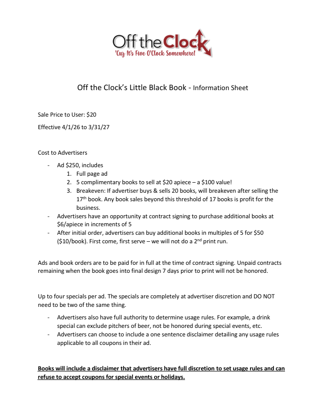 We are currently signing advertisers for the 2026 - 2027 Little Black Book!